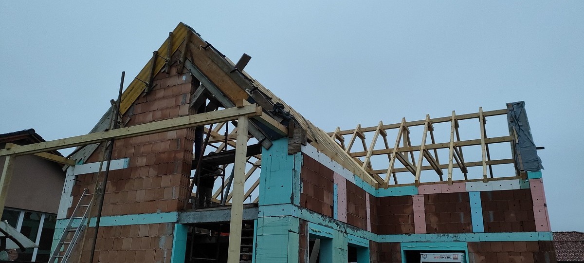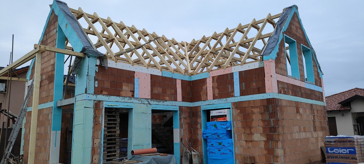 Új ház építésének kőműves munkálatai